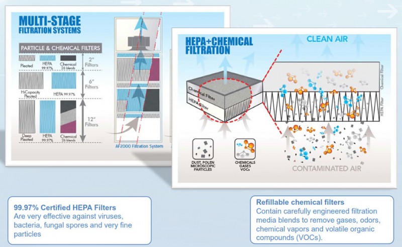 • โดยการกรองอนุภาคจากตัวกรองประสิทธิภาพสูง HEPA filter , Carbon filter และ/หรือ