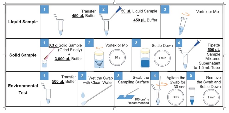 ขั้นตอนในการทดสอบ ง่ายๆ สะดวกไม่ยุ่งยาก ไม่ต้องต้มอุ่นสาร จึงเหมาะกับการตรวจ on-site ภาคสนามในไลน์การผลิตอาหาร