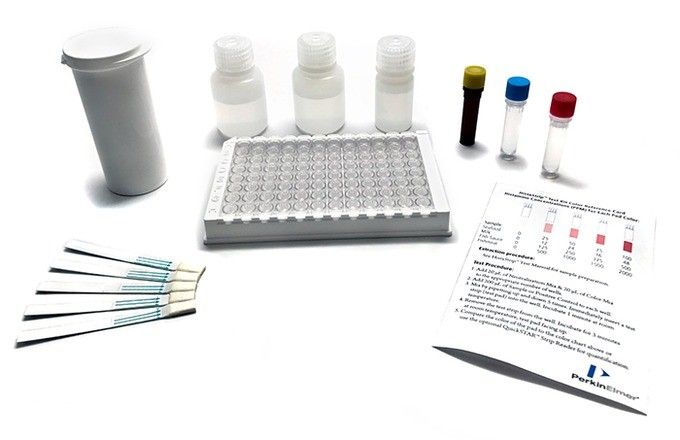 แผ่นสตริปตรวจสารฮีสตามีน Histamine : Histastrip ของ Perkin Elmer ( ISO 9001), USA.