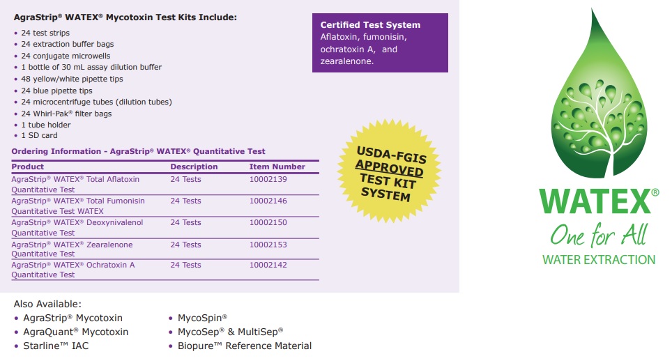 ชุดทดสอบสารพิษจากเชื้อรา Mycotoxin ได้รับการรับรอง test kit system จาก USDA-FGIS